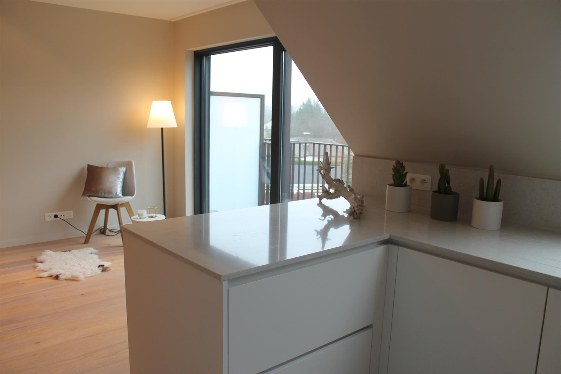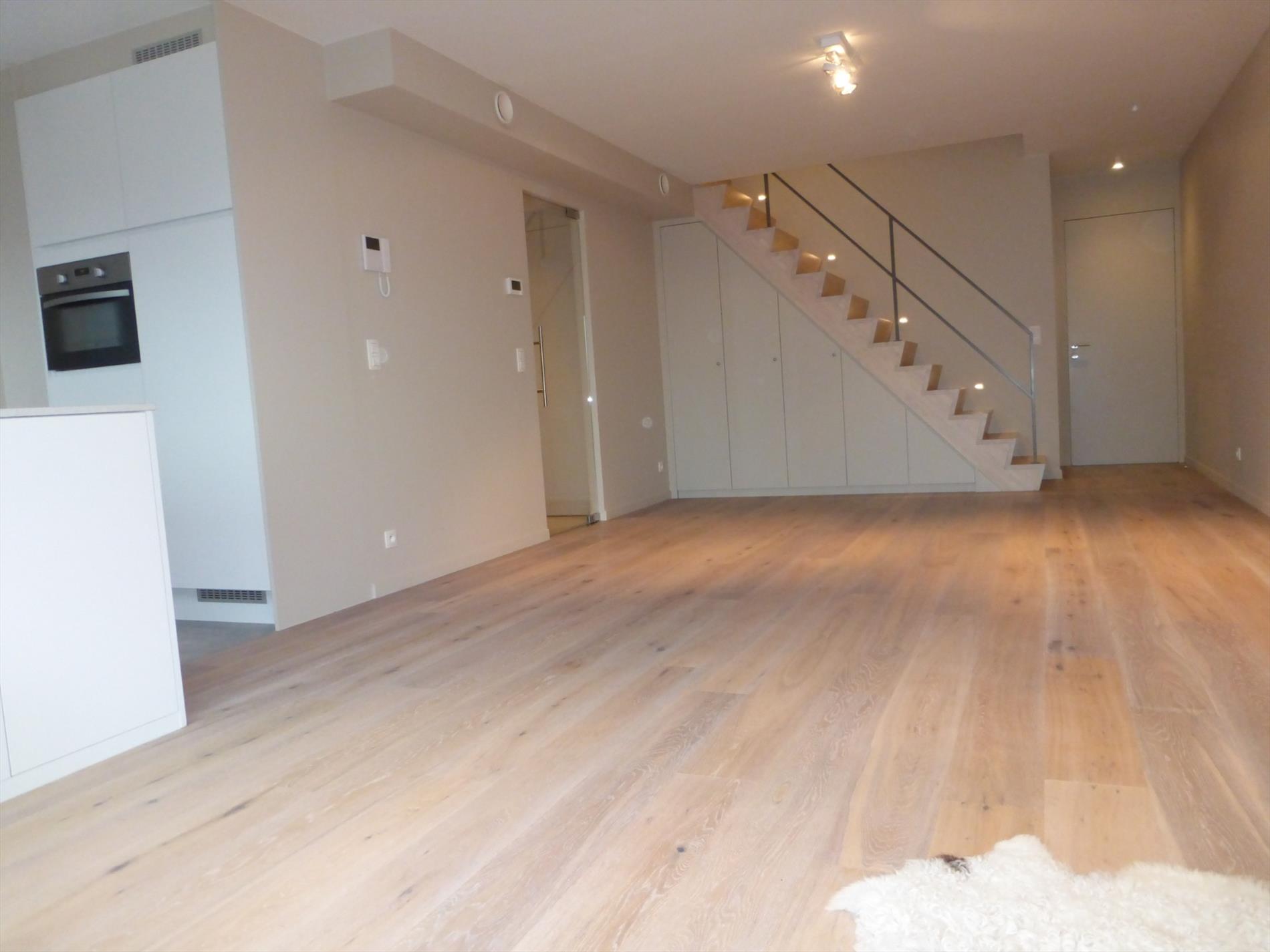 Dit ruime duplex appartement heeft een prachtige leefruimte met parketvloer en volledig geïnstalleerde open keuken! Het aanpalende zuidgeöriënteerd terras verlengt de leefruimte naar buiten toe en creëert een open gevoel. Op deze verdieping is tevens één zeer ruime slaapkamer, badkamer met ligbad, berging en een apart toilet. Via de trap kom je in de nachthal die toegang geeft tot de een andere ruime slaapkamer , buro en aparte douchekamer.