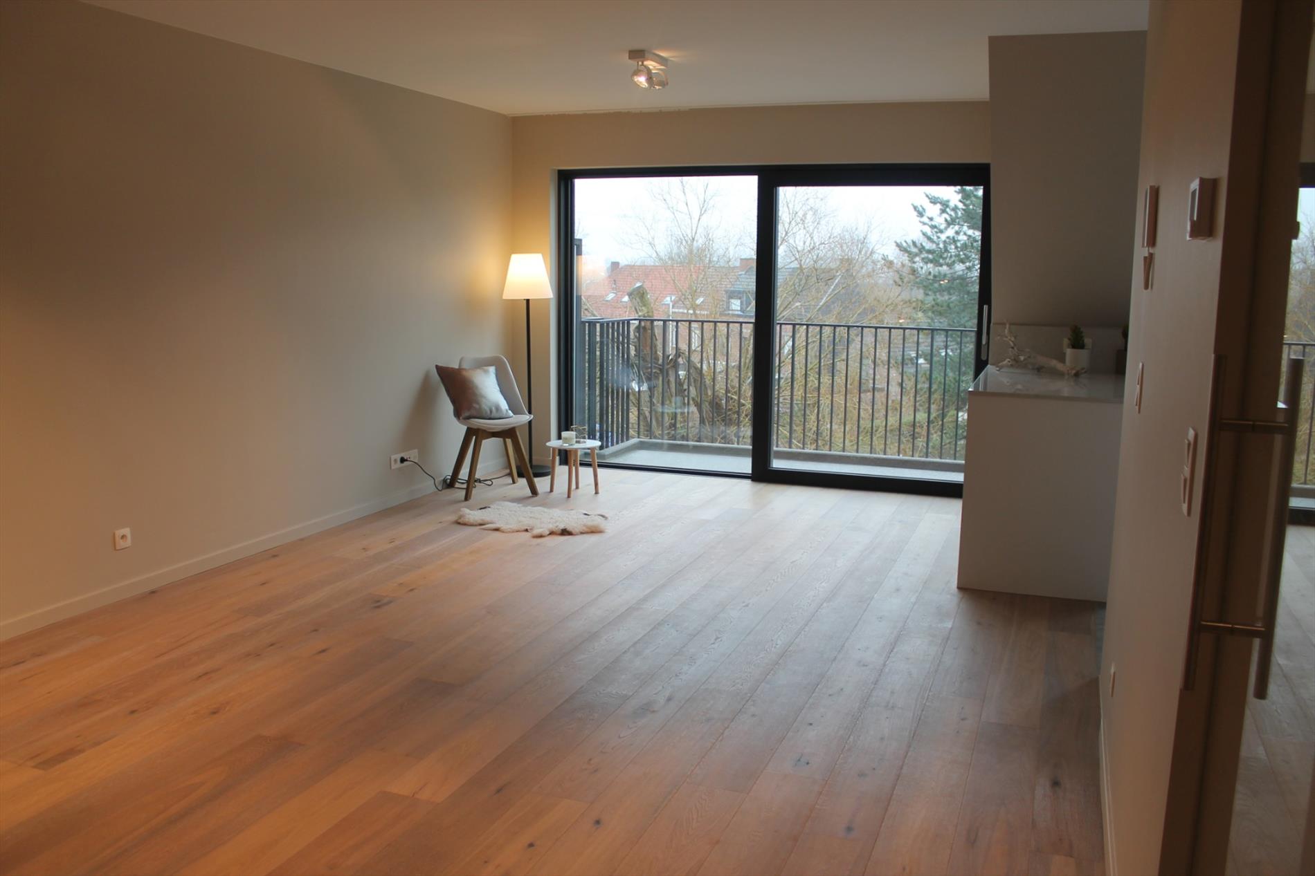 Oostakker- Recent tweeslaapkamer-appartement met bureau, terras en ondergrondse autostaanplaats te huur.