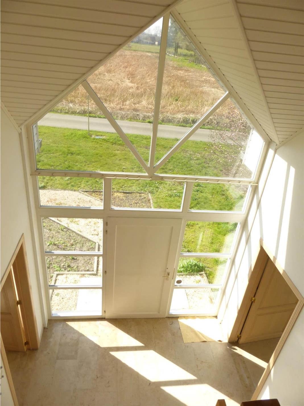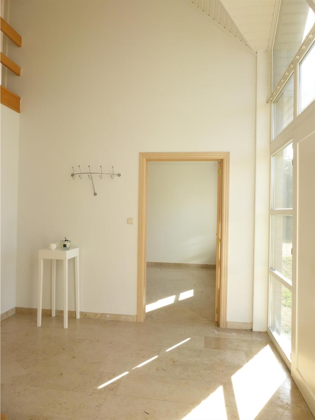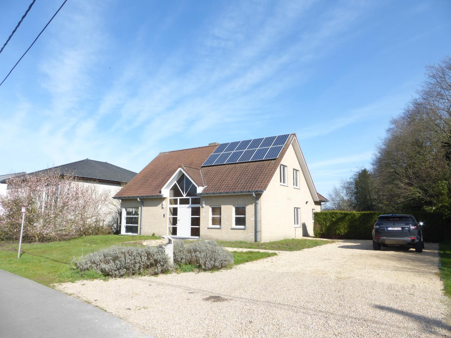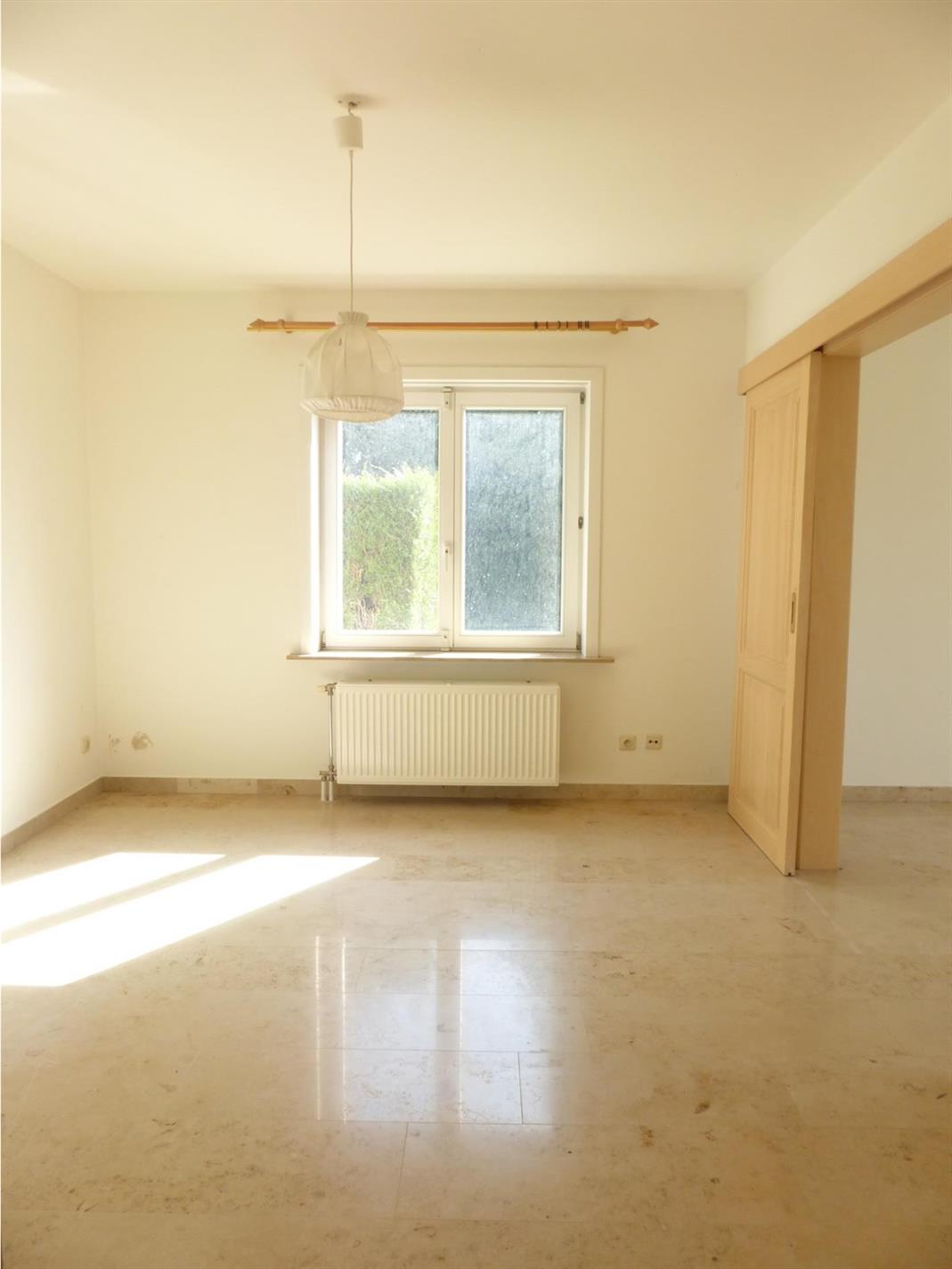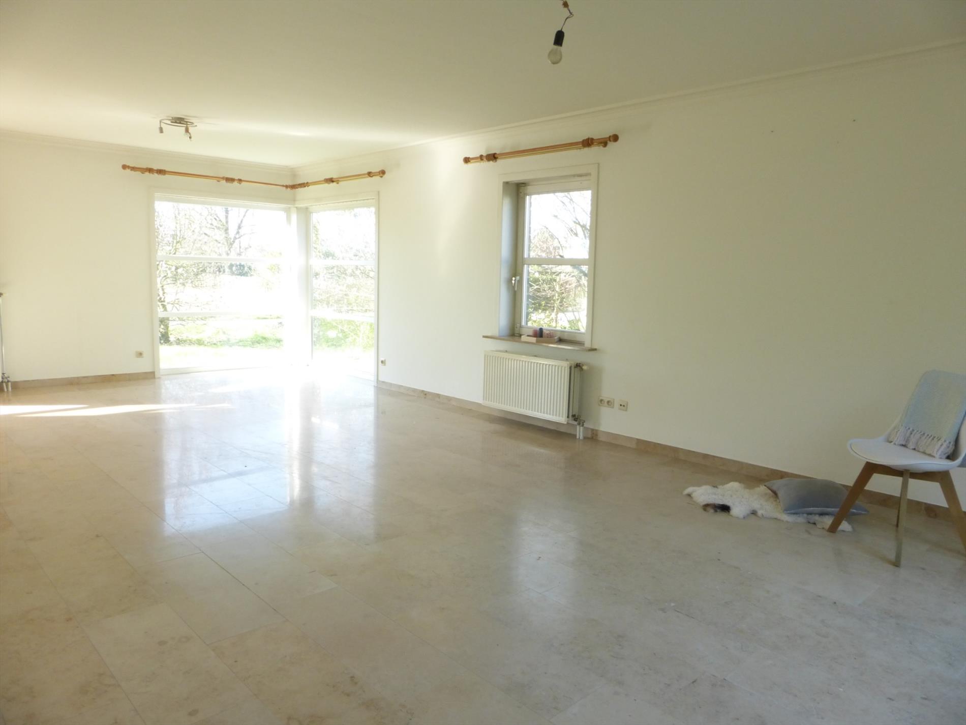Indeling; inkomhal met apart gastentoilet, links komt u binnen in de leefruimte die zeer lichtrijk is dankzij de grote raampartijen. Verder komt u in de grote (ietwat op te frissen ) keuken (geïnstalleerd), een keukenberging en de wasberging. Vanuit de inkomhal rechts bevindt zich een vierde kamer met aanpalende kamer en 2e badkamer (douche/lavabomeubel) die kan gebruikt worden als bureel , praktijkruimte, of als extra slaapkamer met zithoek.