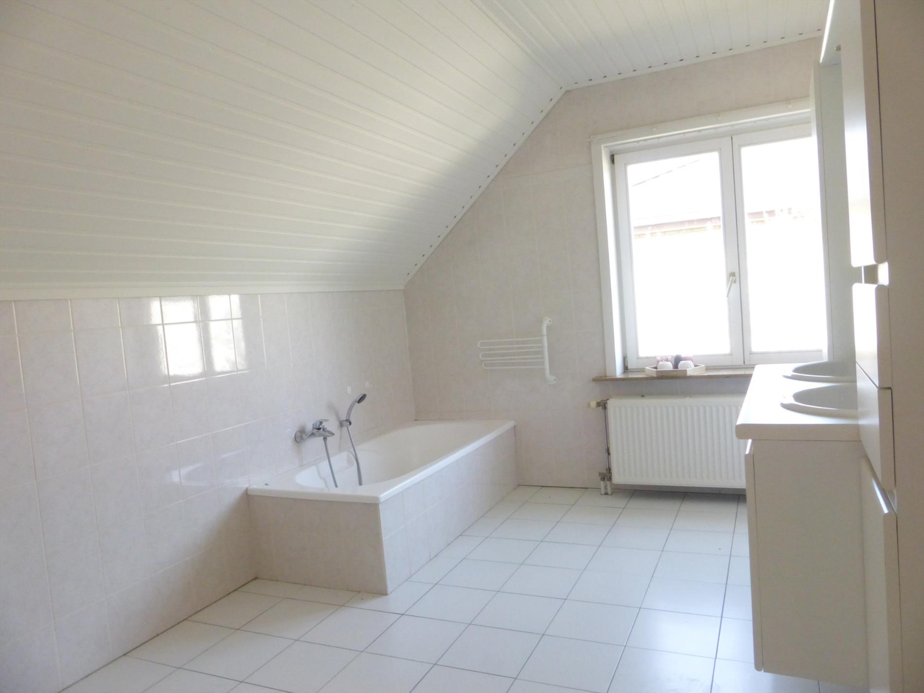 Boven bevinden zich 3 slaapkamers , een opbergruimte, en de grote badkamer (bad, lavabomeubel, toilet). En een zolderruimte onder het dak.