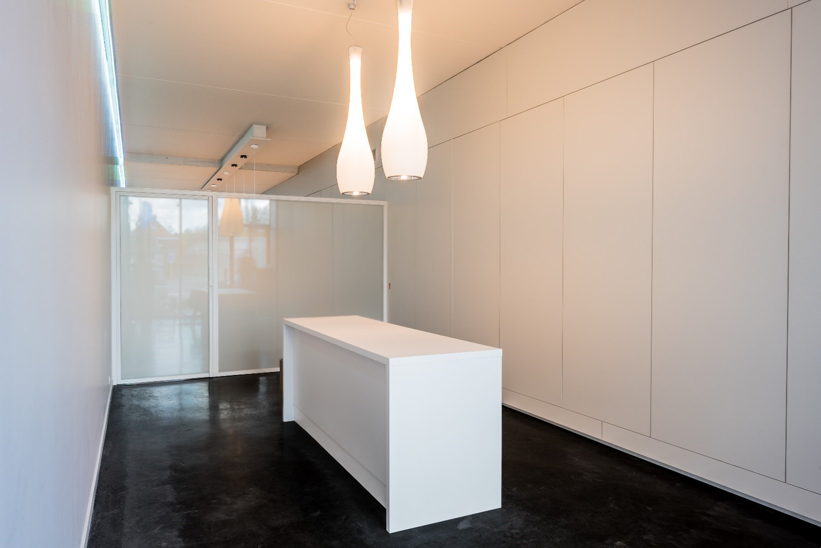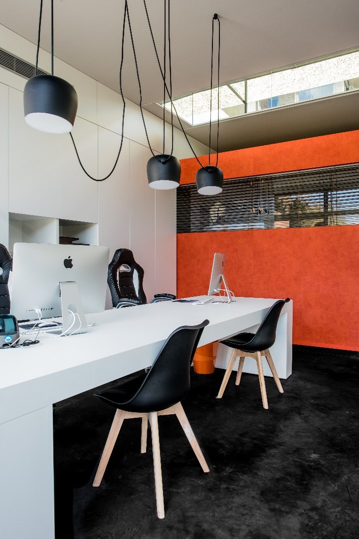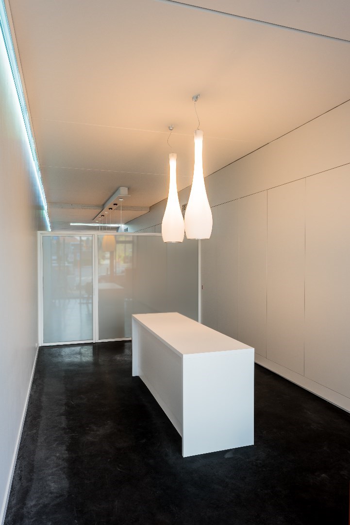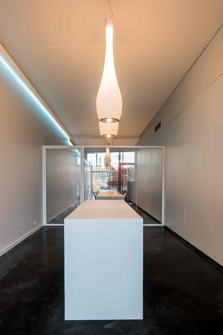 De gehele ruimte straalt professionalisme en klasse uit mede dankzij de hand van Architect Patrick Persoons.
