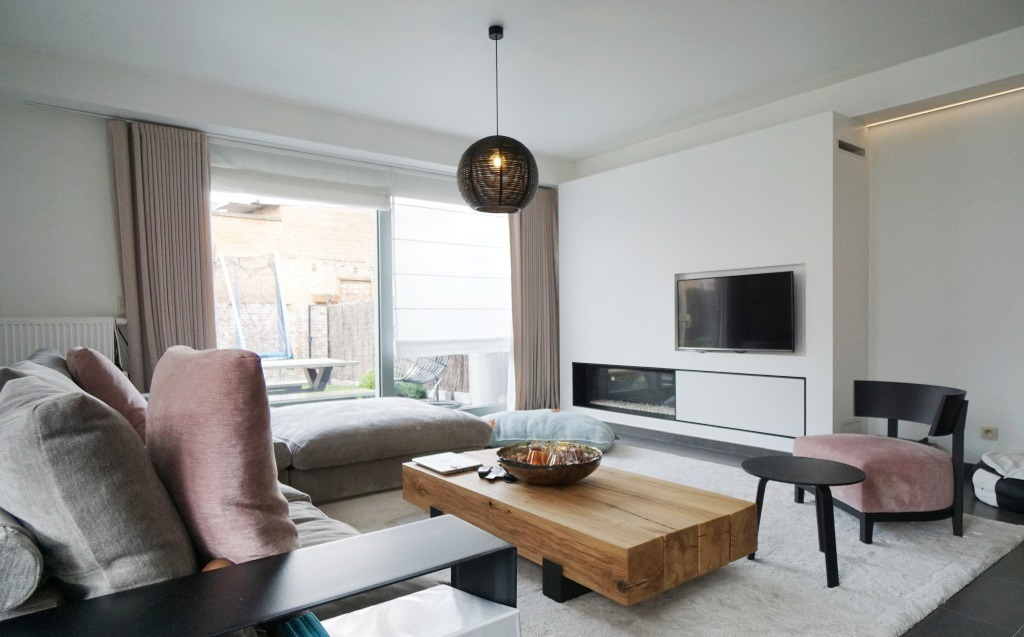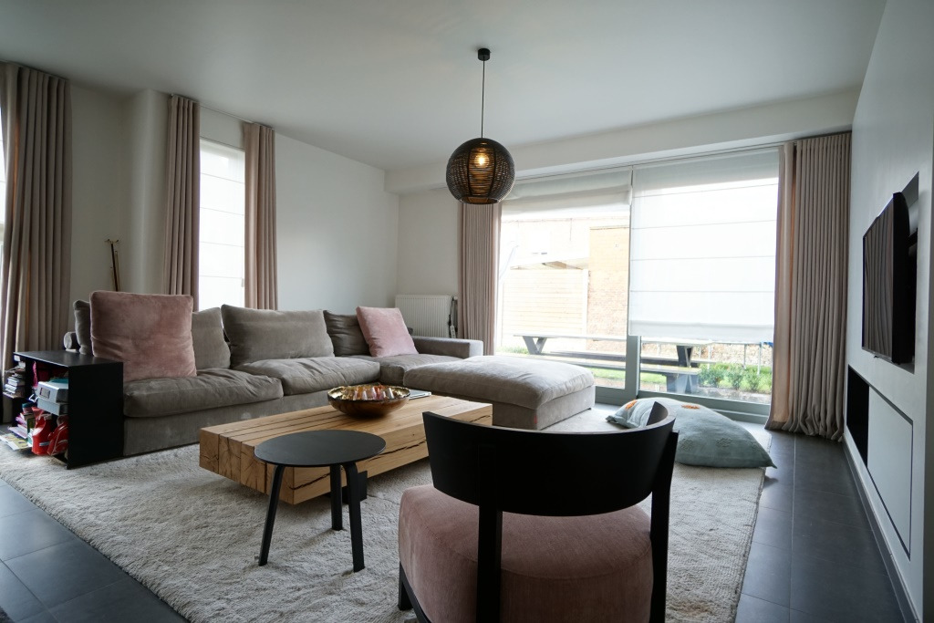 Op maat gemaakte gordijnen en stores. 50 euro/maand gemeenschapp. kosten onderhoud oprit en garagecomplex.