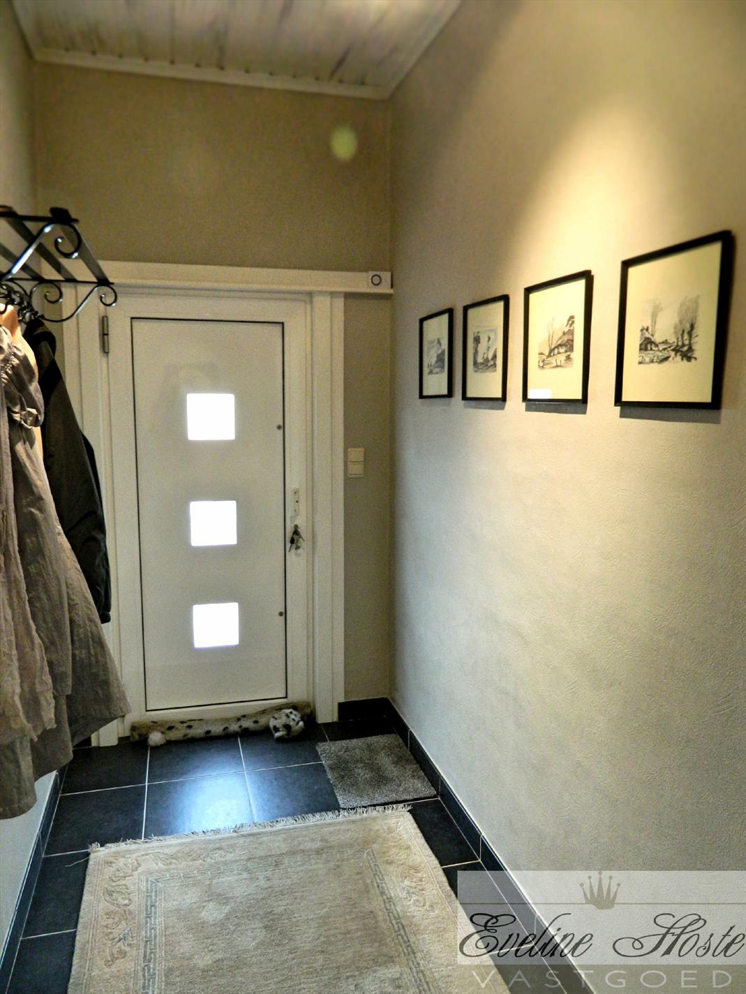 Gelijkvloers bestaat uit; Inkomhall (met ingebouwde vestiaire), bureau, polyvalente kamer (momenteel muziekkamer), wasplaats, keuken, bijkeuken, woonkamer, grote inpandige garage (en aparte garage), berging en wc. 1e verdiep bevat 3 slaapkamers en een badkamer.